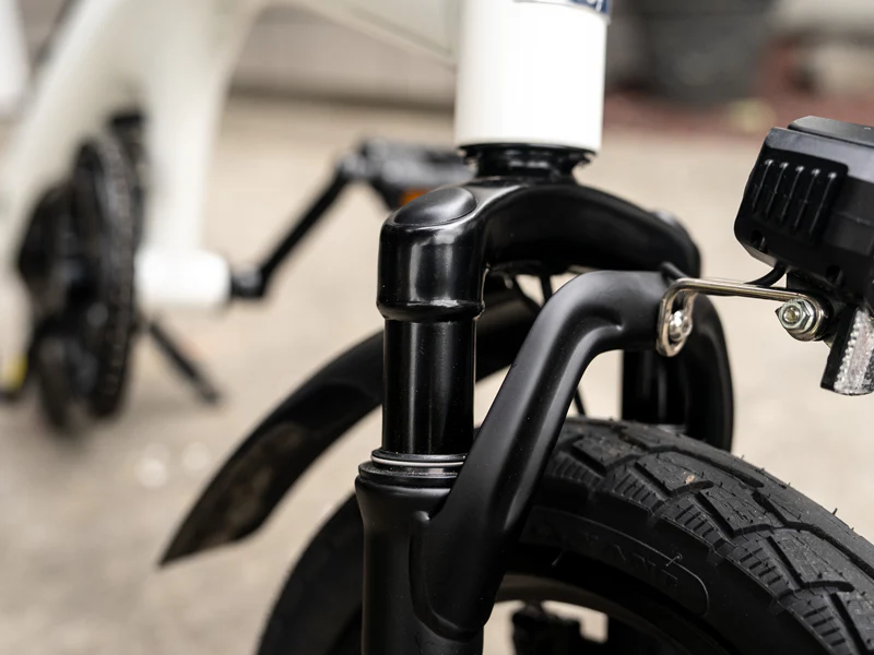 - A front suspension fork helps smooth out cracks, joints, and curb cuts at city speeds.