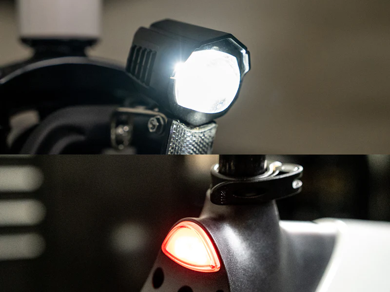 - Front LED headlight and rear brake light, so you’re easier to see in low-light conditions.
