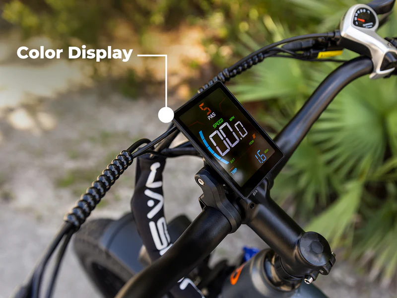 • A color display that shows speed, PAS level, battery status, and trip data.