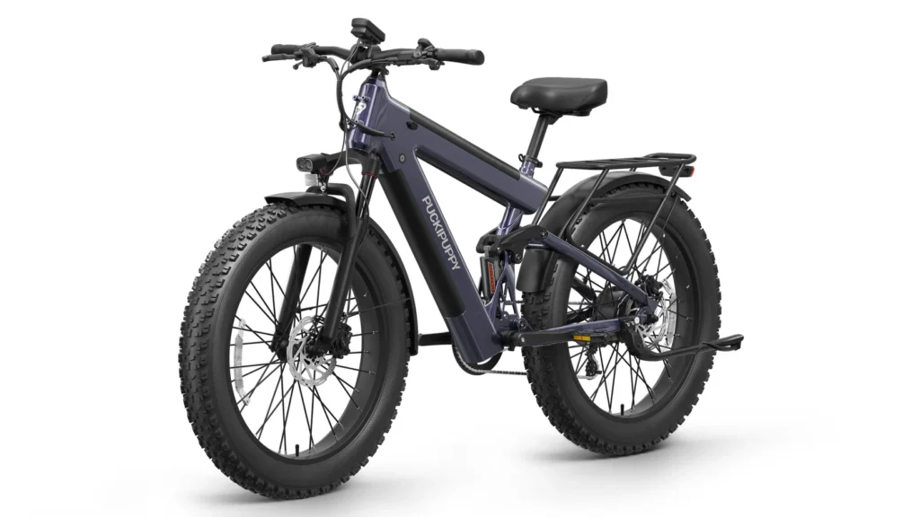 The Puckipuppy Bulldog Pro isn’t trying to be a slim, minimalist city bike. It’s unapologetically a long-range, full-suspension, fat-tire workhorse aimed at riders who want big range, big comfort, and big capability in one package.