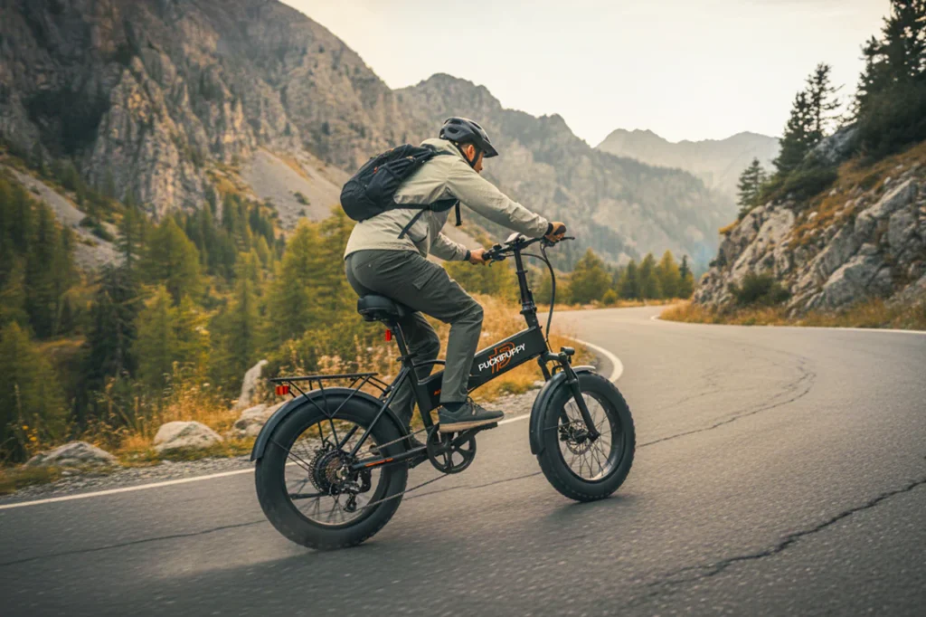 Puckipuppy lists a 40–60 mile range and highlights “up to 60 miles per charge” in favorable conditions. Real-world range depends heavily on rider weight, terrain, speed, and assist level, so it’s better to think in realistic bands: