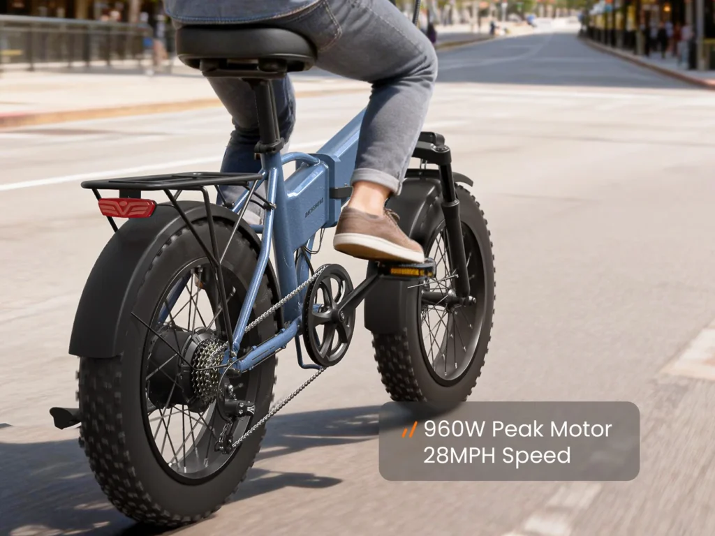 The 500W/960W motor plus a 7-speed drivetrain is capable of handling moderate hills and campground grades. On steeper or extended climbs, heavier riders will still want to downshift and pedal, but it’s a noticeable step up from 350W budget folders. - Top speed reality