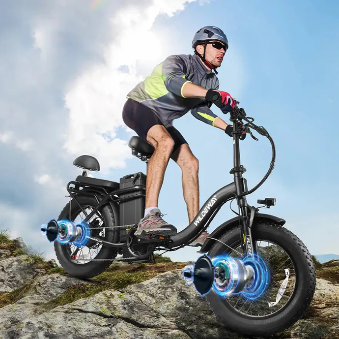 The Wildeway SummitX is a 20″ fat-tire, dual-motor folding ebike built for riders who want real off-the-line punch, serious hill-climbing, and big-range battery options in a compact package. With a peak 2300W dual-motor system (118 Nm torque), 48V 32Ah or 60Ah battery options, and a claimed top speed up to 28 mph, it’s aimed squarely at riders who want more than a typical commuter folder.